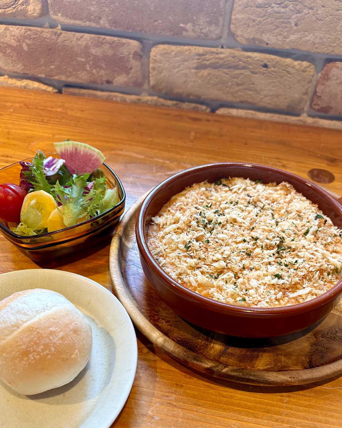 海老のトマトクリームグラタン(パン、ミニサラダ付き)